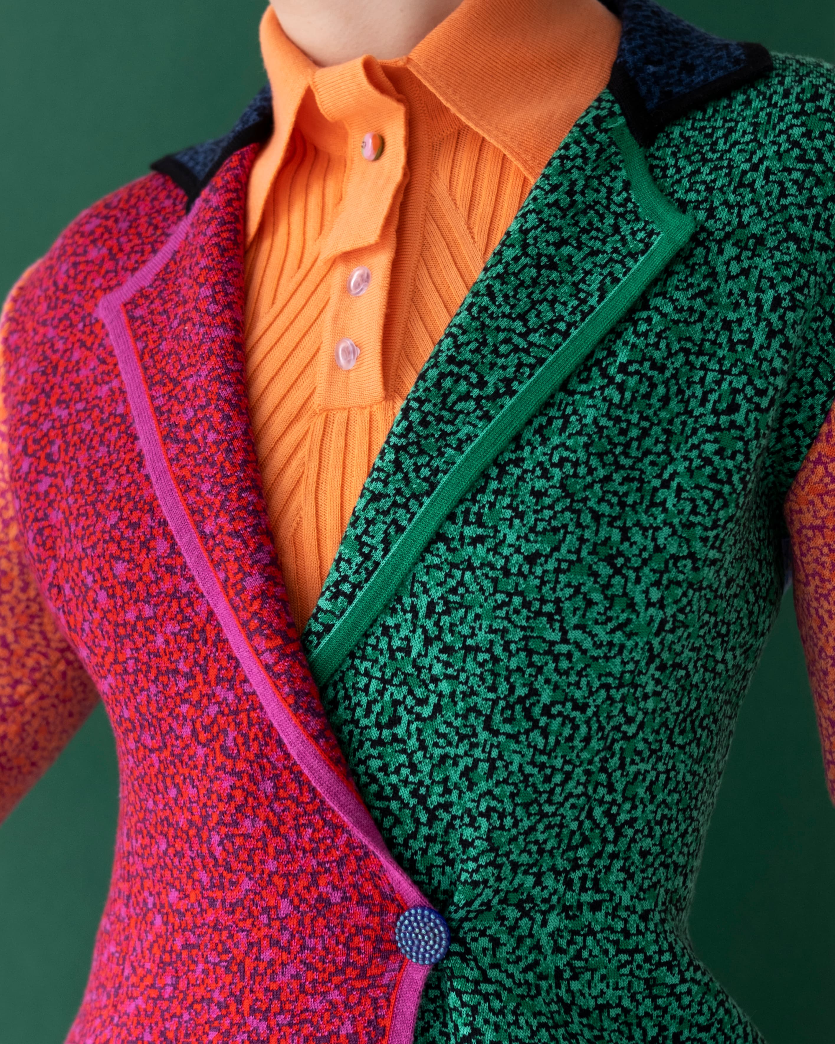 Our new 3D knit machines works in the round, attaching sleeves and details like its nobody’s business. It’s a relatively new technology called ‘whole garment’, with machinery that’s very complex to program and operate. The result though – is totally seamless garments with great detailing.